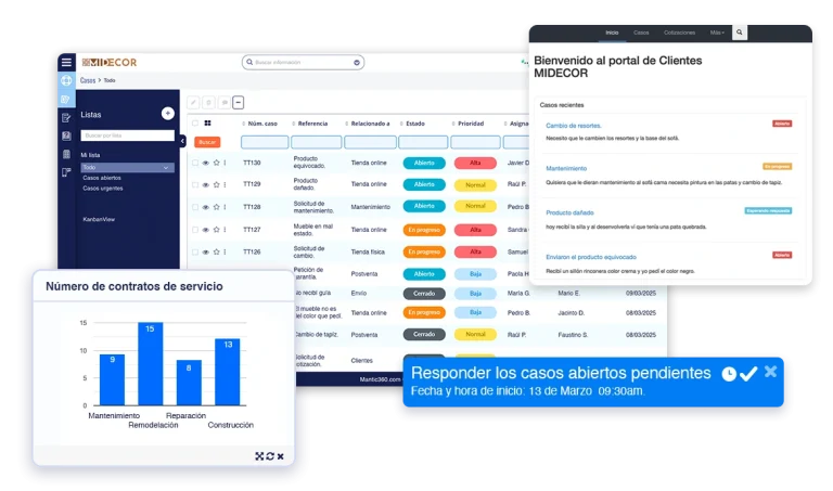Mantén viva tu cartera de clientes y bríndales un servicio extraordinario de la mano de herramientas de automatización y un portal exclusivo para la atención de sus solicitudes.