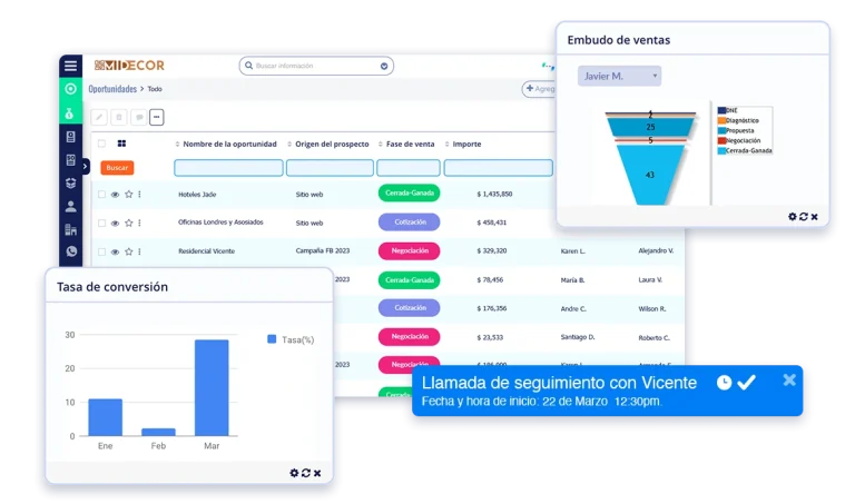 No pierdas ventas por falta de seguimiento. Tus agentes de ventas conocerán el estado exacto de sus oportunidades y cerrarán más ventas, más rápido.